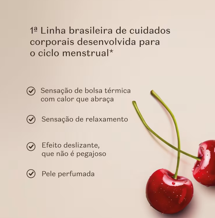 Cuide-se Bem Cereja de Fases, a primeira linha brasileira de cosméticos corporais desenvolvida para o ciclo menstrual* Está aqui para te apoiar durante todas as fases do seu ciclo, inclusive na TPM!
