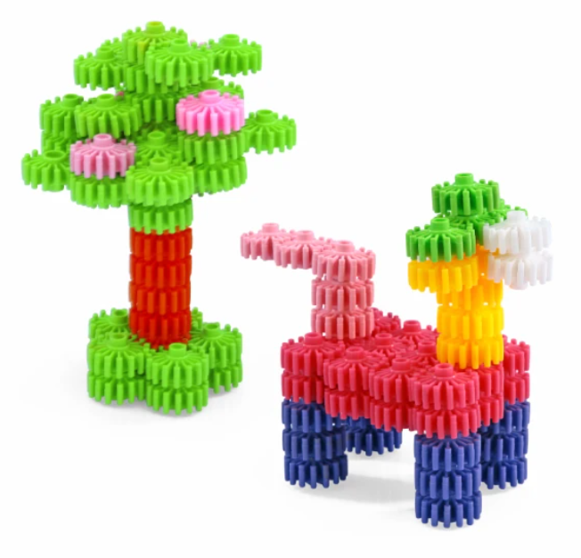 Contém: 84 peças de plástico durável e colorido (engrenagens e encaixes).