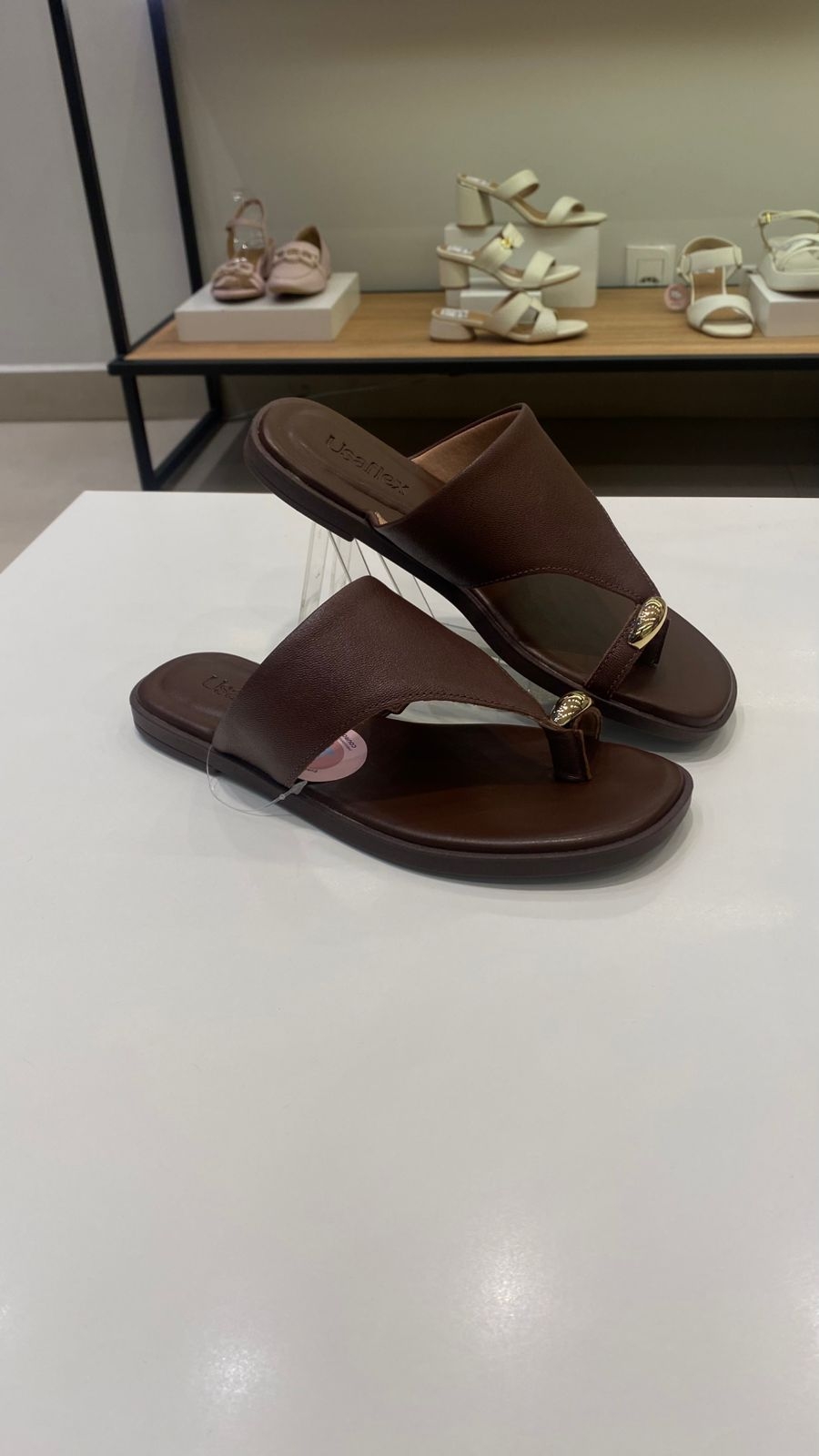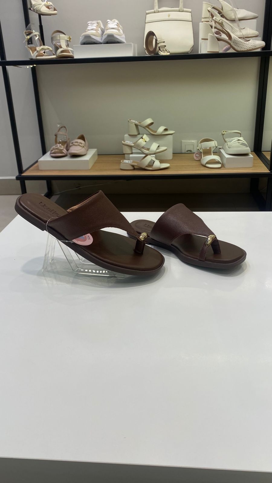 Sinônimo de conforto e elegância, este chinelo em couro legítimo na cor pinhão é a escolha ideal para quem busca praticidade sem abrir mão do estilo. O detalhe dourado nas tiras traz um toque sofisticado, enquanto a palmilha macia oferece bem-estar a cada passo. Perfeito para compor looks casuais com charme e leveza.