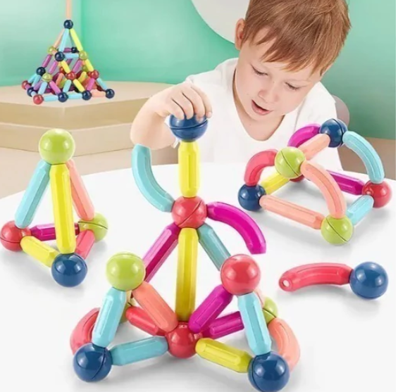 Blocos Magnéticos - Bolinhas e Bastões vêm em uma variedade de cores e as crianças aprendem explorando e desenvolvendo habilidades de percepção. cores. Imaginação e criatividade: montar e criar é a chave para desenvolver a imaginação e a atenção das crianças.