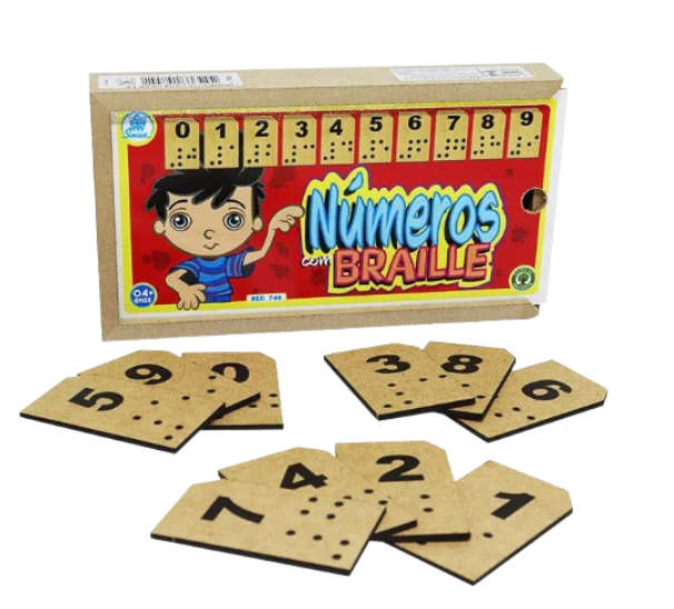 Este material de apoio auxilia no aprendizado dos números em Braille, possibilitando que pessoas com deficiência visual, parcial ou total, tenham acesso à leitura dos números.