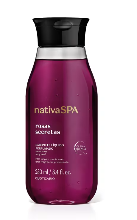 Nativa SPA te convida a sentir a vida de pele e alma. O Sabonete Líquido Perfumado Corporal Nativa Rosas Secretas transforma o banho em um ritual intenso com perfumação provocante, capaz de despertar o desejo imediato* . Sinta a experiência de um banho sedutor, perfumado e luxuoso.