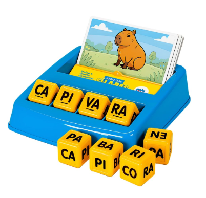 Um jogo dinâmico e educativo para a criança aprender brincando: primeiro identifica a figura da carta e depois seleciona as sílabas corretas para montar a palavra. Auxilia no aprendizado da leitura e escrita através da formação de palavras silaba por silaba, estimulando a percepção visual e a associação entre imagens e escrita.