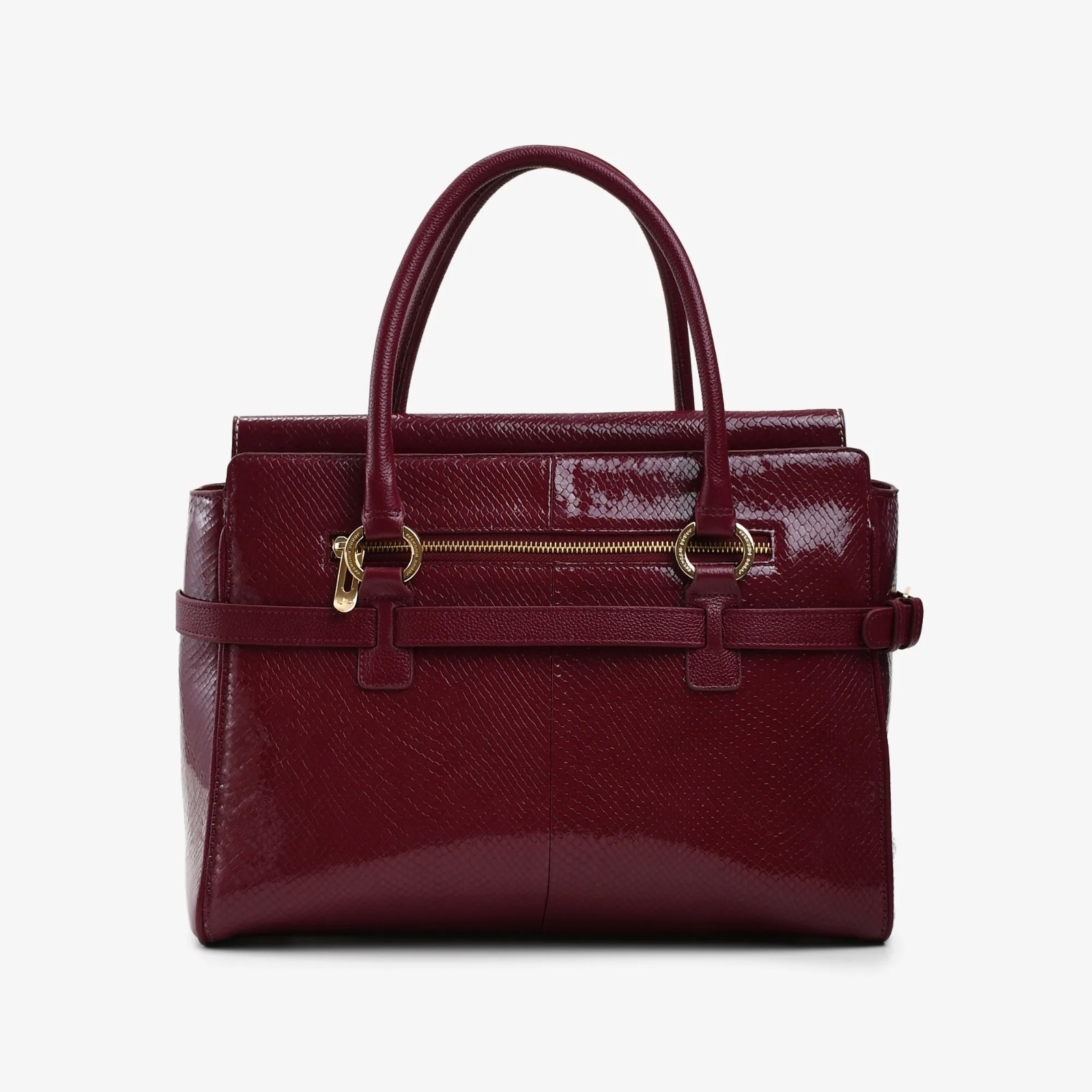 A bolsa tote em couro envernizado na cor vinho integra a coleção-cápsula Authentic Malbec, inspirada no rótulo mais emblemático de BISCHOFF WINES. Em edição limitada e numerada, a peça incorpora elementos reais desse universo no design.