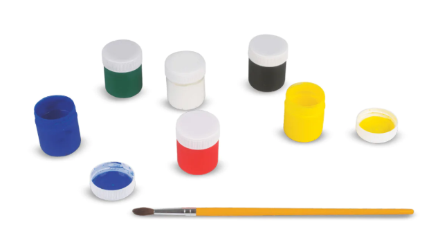 Contém: 1 cavalete de 45 cm, 1 paleta de cores em madeira, 6 tintas guache coloridas e 1 pincel.