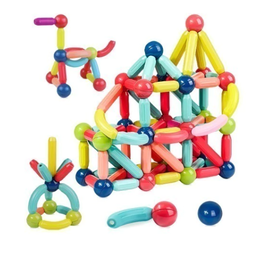 Blocos Magnéticos - Bolinhas e Bastões vêm em uma variedade de cores e as crianças aprendem explorando e desenvolvendo habilidades de percepção. cores. Imaginação e criatividade: montar e criar é a chave para desenvolver a imaginação e a atenção das crianças.